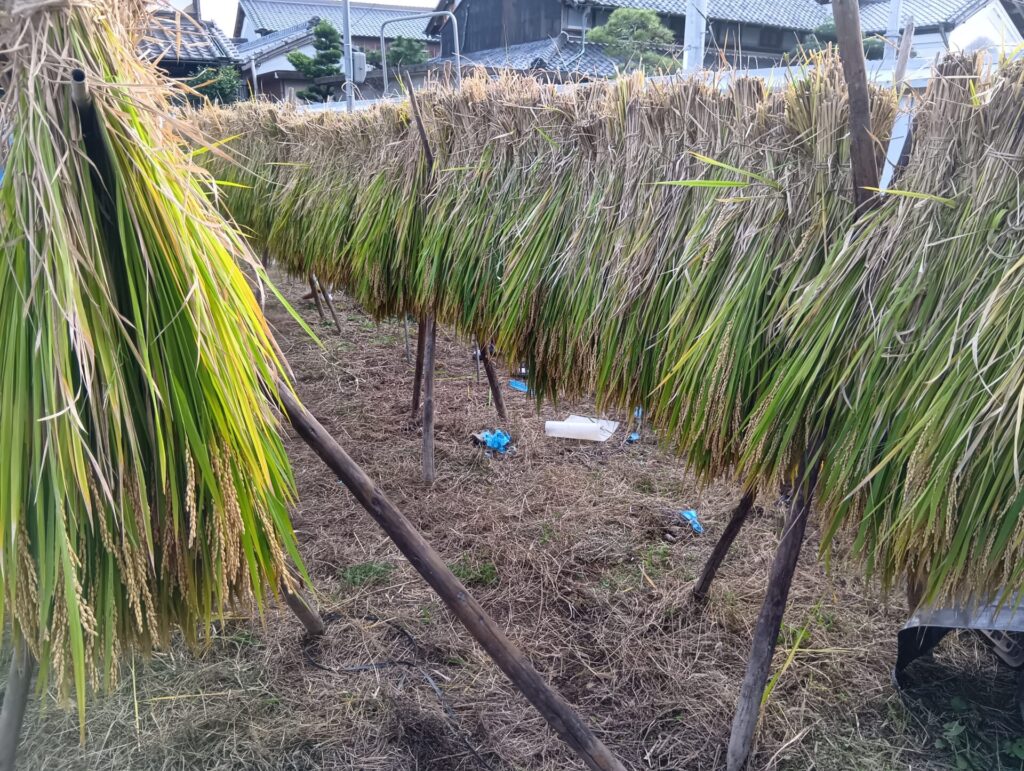 みんなで力を合わせて「稲架掛け(はさがけ)」