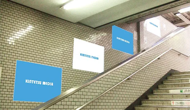 ホームの階段にB0×2連貼りで集中掲出できる、接触率の高い媒体です。